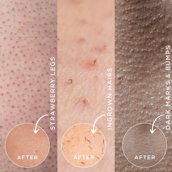 Yes, our Ingrown Hair Lotion can help to reduce the appearance of strawberry skin, which is caused by clogged hair follicles and trapped hairs leading to a bumpy, red appearance. The lotion works by exfoliating the skin and reducing inflammation, which helps to clear blocked follicles and smooth the skin’s texture. Regular use can improve the overall look of strawberry skin by promoting clearer, healthier skin.